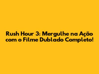 Ei, pessoal! Se você está procurando uma dose explosiva de ação, comédia e as incríveis duplas de Jackie Chan e Chris Tucker, então prepare-se! Vamos mergulhar de cabeça em "Rush Hour 3", o filme que sacudiu as telonas e garantiu muitas risadas e adrenalina. Neste artigo, vamos falar sobre tudo: onde assistir "Rush Hour 3 filme completo dublado", os destaques do filme, curiosidades e por que essa franquia é tão amada. Prepare a pipoca e vamos nessa!